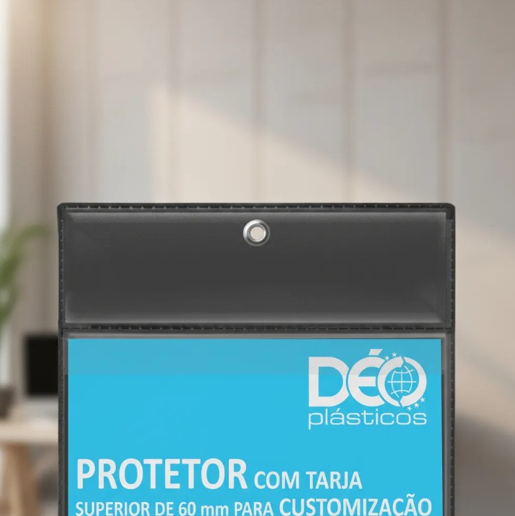 Protetores em Quadro para Customização da Tarja Superior com 60 mm Formato A4 Especificações: Referência 655PTO Cor: Transparente Marca Déo Plásticos Fabricado no Brasil Dimensões: Ref. 655 - 214x302 mm / 0,085 kg